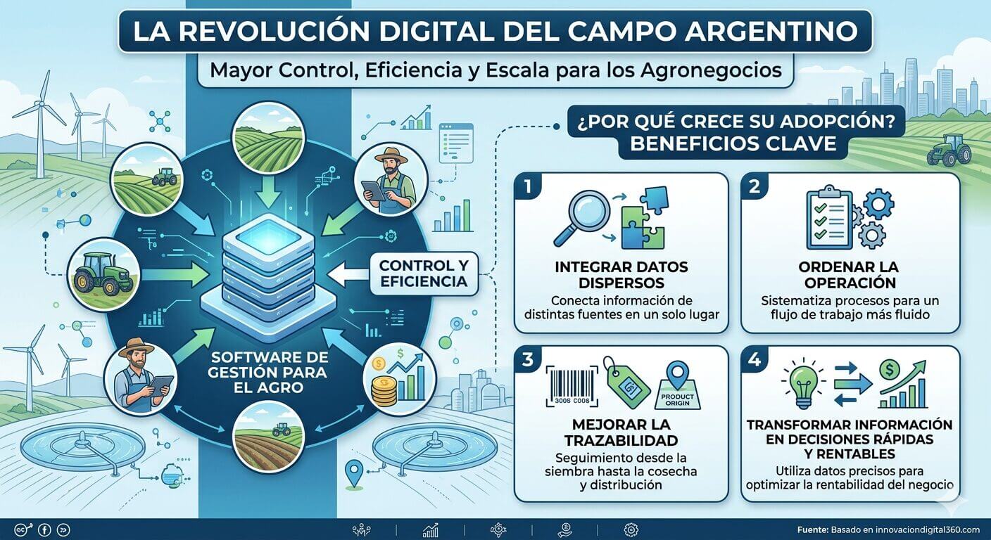 Ese cambio también se refleja en la operación diaria. Durante años, buena parte de la información del campo se registró tarde y en papel. Hoy, el software de gestión para el agro busca cerrar esa brecha.